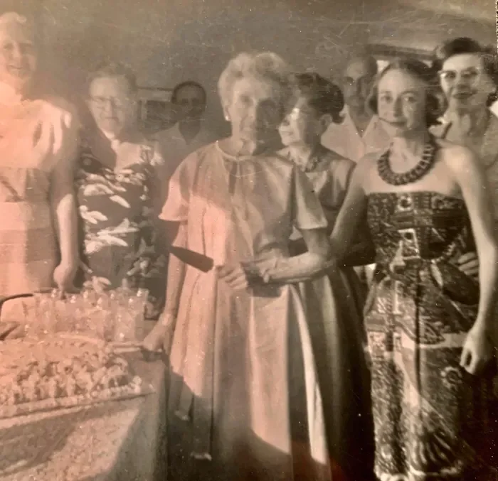 The last known photo taken of Agnes Pelton surrounded by her desert circle of friends as they celebrated her birthday.